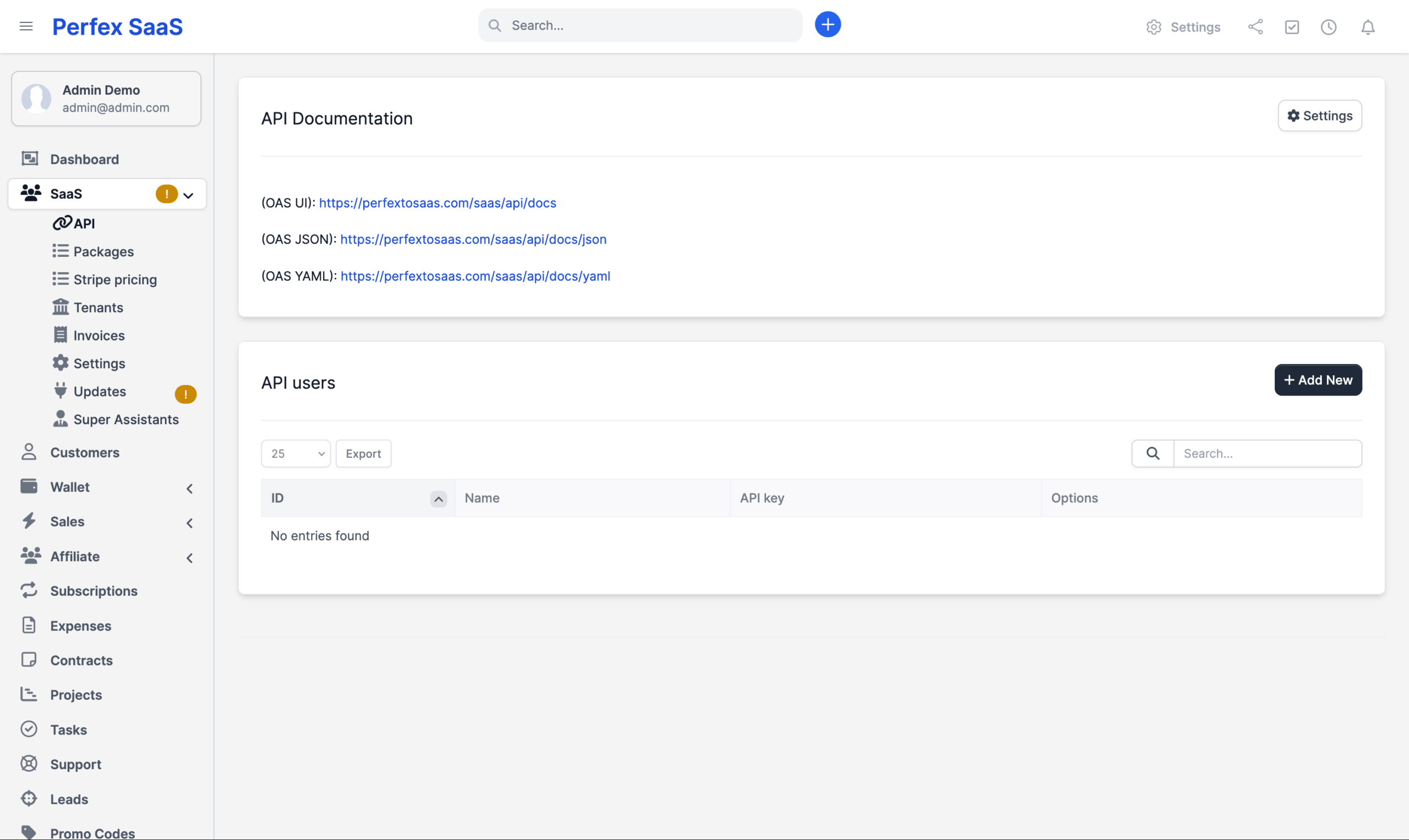 Click here to read more: https://perfextosaas.com/saas/api/docs